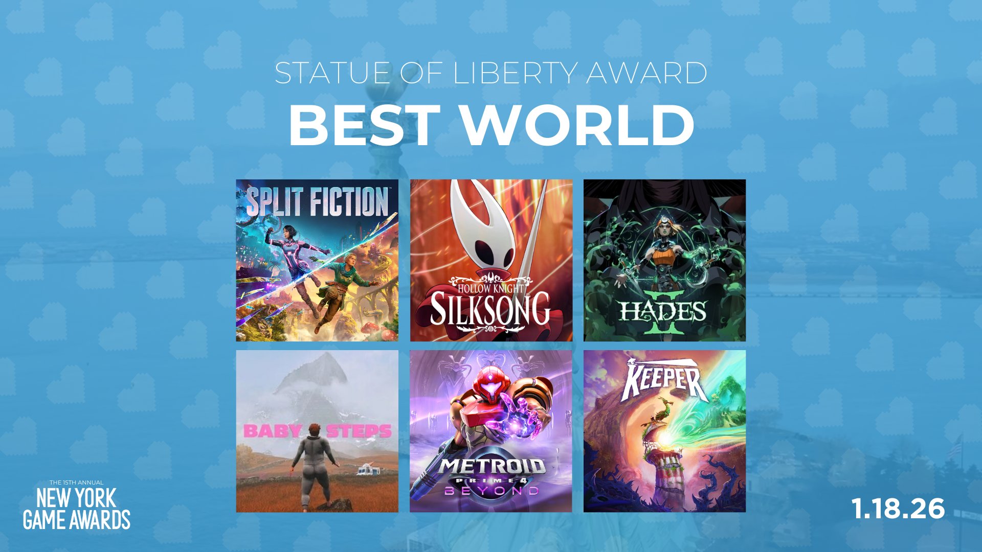 Ещё 3 изображения*** Прежде чем отправиться в рождественский отпуск, Team Cherry сообщила, что на праздничных распродажах обе Hollow Knight можно будет приобрести со скидками. [читать комментарии] | | 16 декабря Нью-Йоркский кружок критиков видеоигр обнародовал список номинантов для ежегодной премии New York Game Awards. У уже пятнадцатой по счёту церемонии два лидера по числу потенциальных призов — Hades II и Ghost of Yōtei. Кроме того, жюри вновь отметило ряд игр, которые на других премиях обошли стороной. Hades II и Ghost of Yōtei претендуют на четыре статуэтки. На одну номинацию меньше у футбольной адвенчуры despelote и Clair Obscur: Expedition 33, которая уже успела обнести Golden Joystick Awards и The Game Awards (на последней «Экспедиция» ещё и установила рекорд по числу одержанных побед за вечер). Остальные игры удостоились одной-двух номинаций. В числе таких Hollow Knight: Silksong, Split Fiction и Mario Kart World. Награду «Легенда» имени Эндрю Юна вручат The Pokémon Company за влияние, оказанное франшизой «Покемоны». С 1996 года было продано свыше 489 миллионов копий игр про карманных монстров. Напомним, наградой «Легенда» чествуют выдающихся деятелей и компании, которые вносят значительный вклад в индустрию на протяжении длительного времени. Награду уже выдали Сэму Лейку (Sam Lake), Нилу Дракманну (Neil Druckmann), Хидео Кодзиме (Hideo Kojima) и другим. «А где же Kingdom Come: Deliverance II?» — спросите вы. К сожалению, RPG от Warhorse Studios не нашлось места ни в одной из категорий. Ранее сиквел Kingdom Come прокатили на TGA и GJA, но игра всё ещё имеет шансы на победу на BAFTA. Вручение наград состоится 18 января. Ниже собрали всех номинантов премии New York Game Awards 2026. Награда «Большое яблоко» за лучшую игру года Награда «Офф-Бродвей» за лучшую инди-игруНаграда Германа Мелвилла за лучший сценарийНаграда «Статуя Свободы» за лучший мир Награда Tin Pan Alley за лучшую музыкуНаграда «Dreamland на Кони-Айленд» за лучшую AR/VR-игруНаграда «Великий белый путь» за лучшую актёрскую игру- Адриан Рей (Adriyan Rae) — Хейзел в South of Midnight.